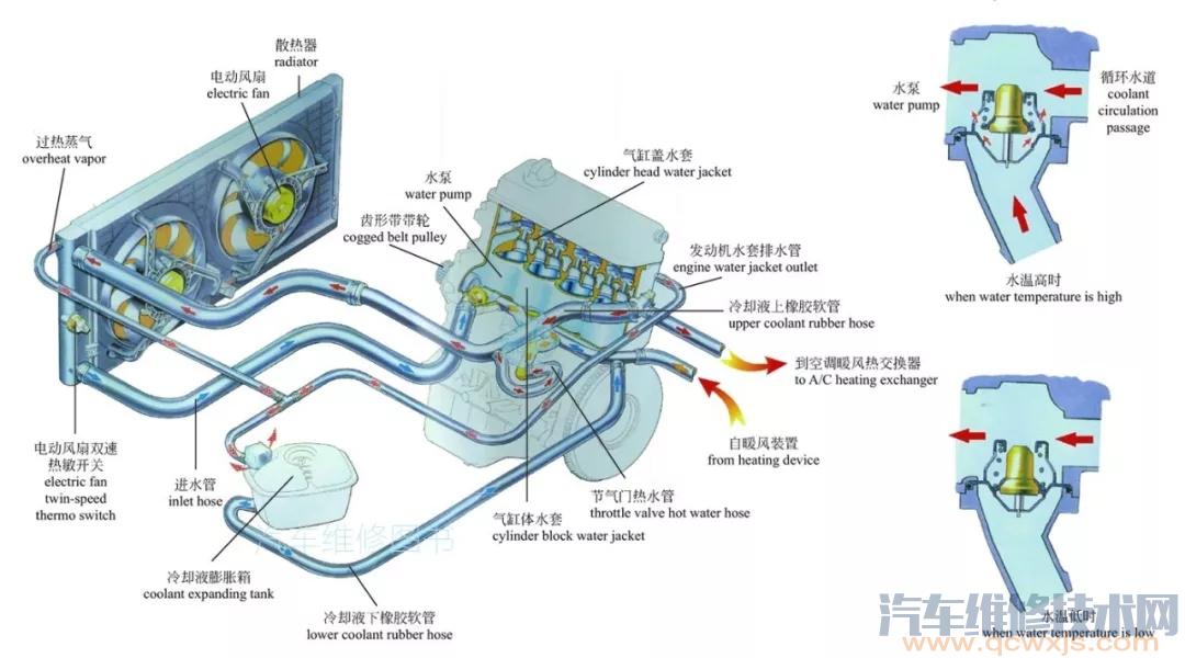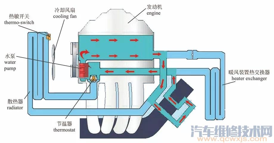 汽車發動機冷卻系統大小循環原理(示意圖)