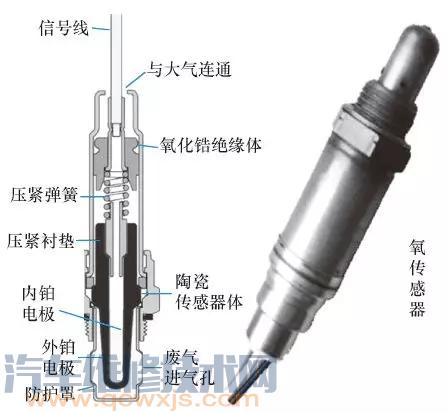 氧傳感器的工作原理與干電池相似,傳感器中的氧化鋯起類似電解液的作用。