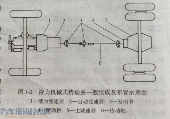 一般由液力變矩器、變速器、萬向傳動裝置、驅動橋組成。
