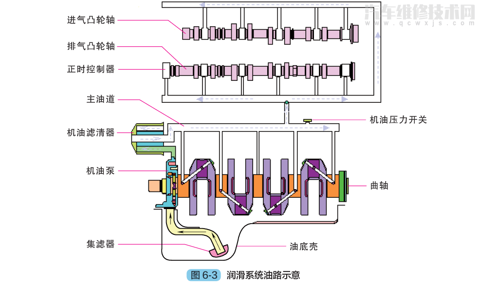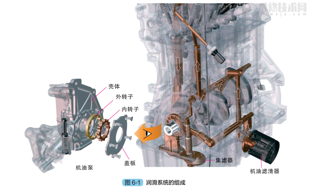 潤滑系統起著潤滑、冷卻、清洗、密封和防銹的作用,并為液壓氣門間隙調節器及可變氣門正時裝置提供壓力機油。