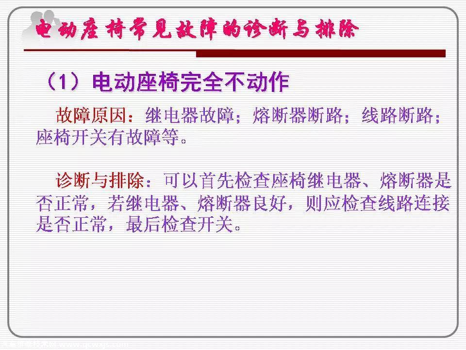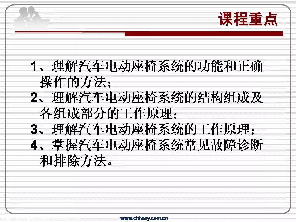 3、理解汽車電動座椅系統的工作原理;4、掌握汽車電動座椅系統常見故障診斷和排除方法。