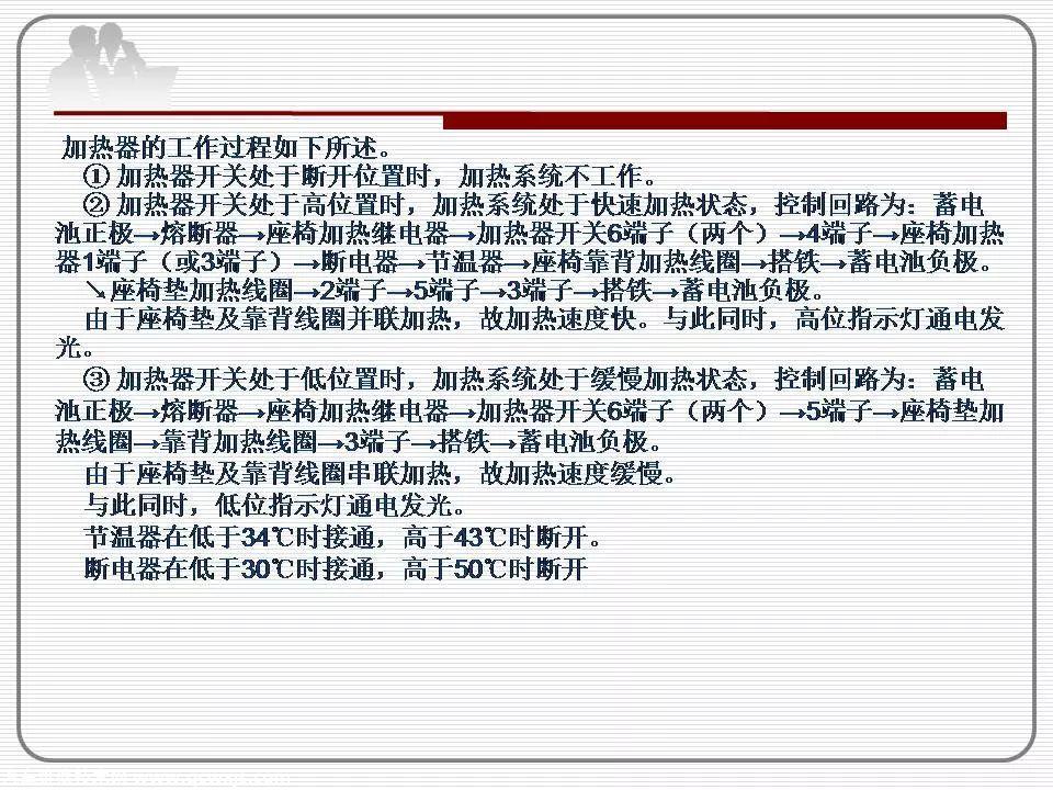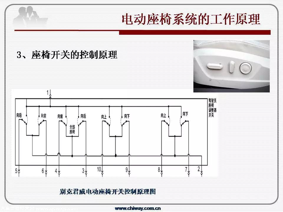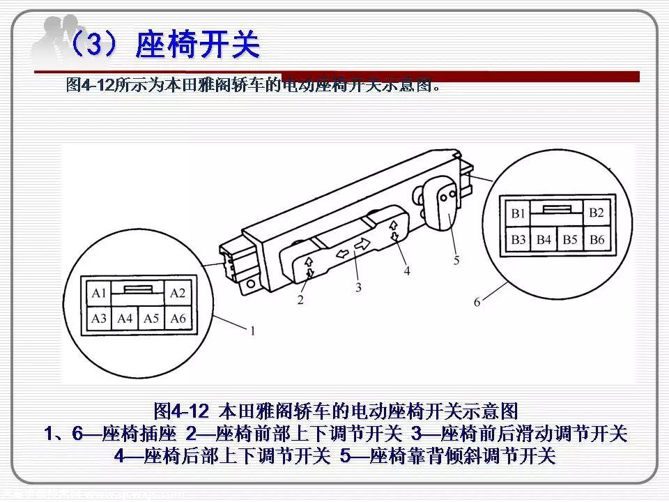 2、理解汽車電動座椅系統的結構組成及各組成部分的工作原理;