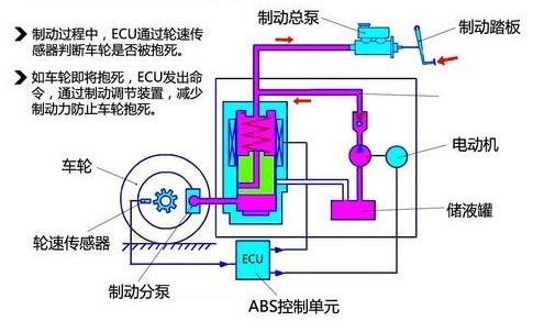 ABS的工作過程可以分為常規制動,制動壓力保持制動壓力減小和制動壓力增大等階段。
