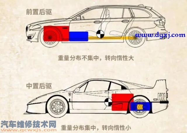 發動機安裝在前軸前面,就叫前置,安裝在后軸后面,就叫后置,而發動機安裝在前后軸之間,叫中置。