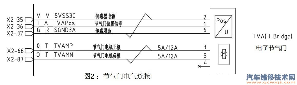 電子節氣門總成與發動機控制器的電氣連接關系,如圖 2 所示。