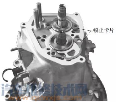 ④ 使用工具取下5擋主動齒輪上的卡環,并取下碟形彈性墊圈,再用拉器取下5擋主動齒輪。