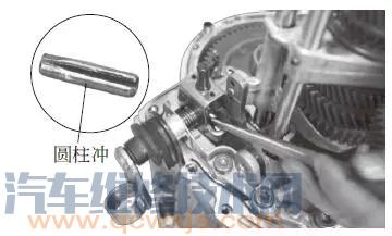① 先掛入2擋,然后用4mm圓柱沖沖出槽銷。