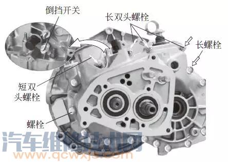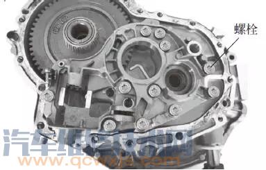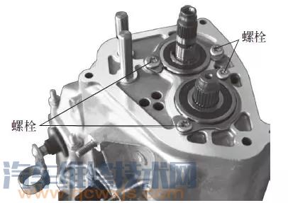 將拆卸工具夾裝在虎鉗上,同時把變速器固定在拆裝工具或工作臺上。使用13mm 的套筒擰下變速器后蓋螺栓,并取下變速器后蓋及密封圈。