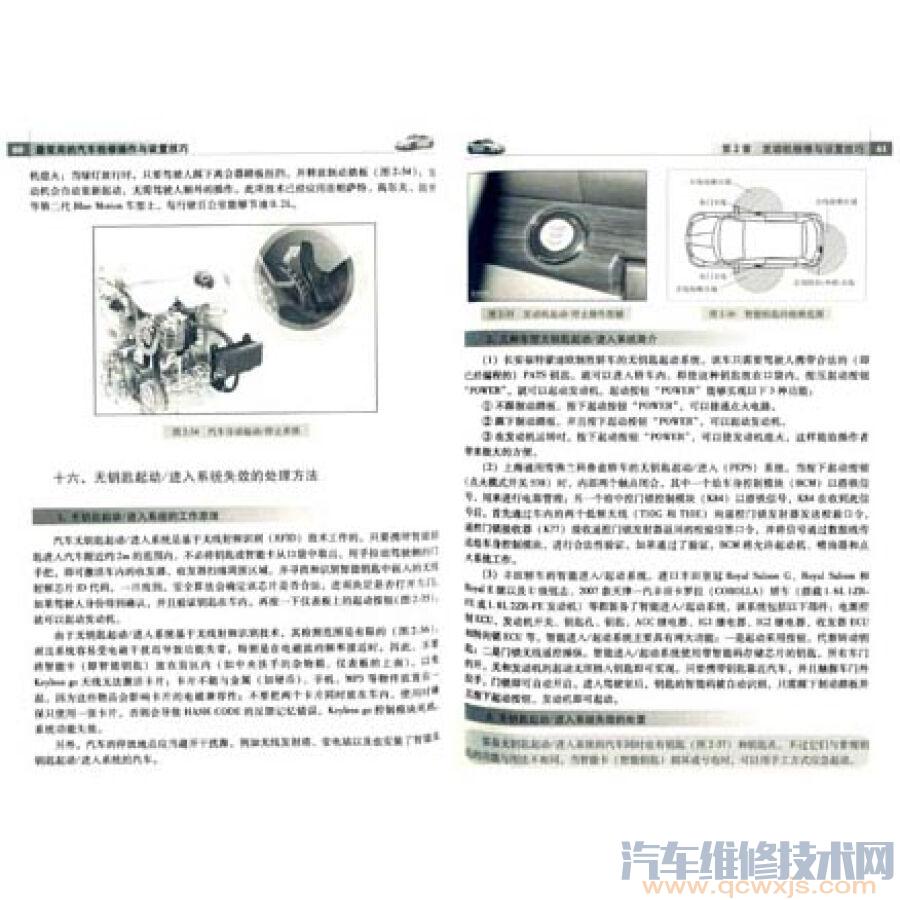 汽車無鑰匙起動/進入系統是基于無線射頻識別( RFID)技術工作的。只要攜帶智能鑰匙進入汽車附近約2m的范圍內,不必將鑰匙或智能卡從口袋中取出,用手拉動駕駛側的門手把,即可激活車內的收發器,收發器掃描周圍區域,并尋找和識別智能鑰匙中嵌入的無線射頻芯片ID代碼,一旦找到,安全算法會確定該芯片是否合法,進而決定是否打開車門。如果駕駛人身份得到確認,并且驗證鑰匙在車內,再按一下儀表板上的起動按鈕(圖2—35),就可以起動發動機。