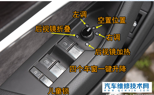 ③外后視鏡的調節開關(角度,折疊,加熱功能)