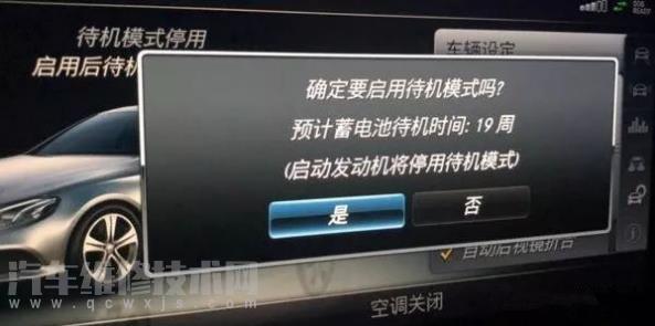 也就是車輛的【待機模式】功能,一旦啟用,新的蓄電池可以待機長達5、6個月。具體設置方法是全車通電,然后進入車輛設定,進去后再旋轉【待機模式】,然后會彈出是否啟動待機模式的彈窗,選擇【是】就好了,最后關閉電源,鎖好車門完事。
