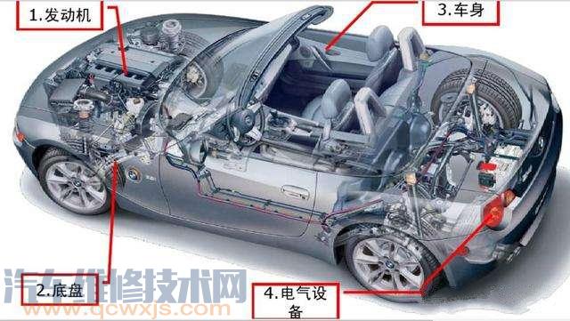 汽車通常是由發(fā)動機、底盤、車身、電氣設(shè)備四大部分組成。