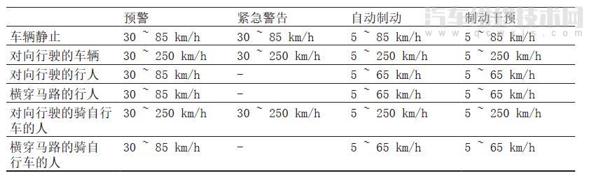 車前測距監控系統適用于以下速度范圍: