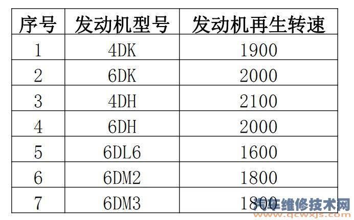 服務再生時查看發動機轉速是否正常,不同機型服務再生時發動機轉速如下表所示: