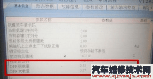 服務再生前,需使用診斷儀讀取碳載量值,當診斷儀讀取的碳載量總量超過“服務再生上限碳載量”,則需要把DPF拆卸下來,