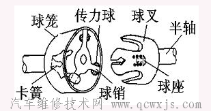 ·萬向節工作時,動力由半軸輸入,經球叉、傳力球、球銷,最后經球籠輸出。結構較緊湊。