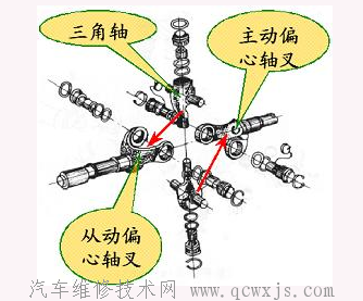 ·傳遞扭矩時,由主動偏心軸叉經三軸線傳遞到從動偏心軸叉