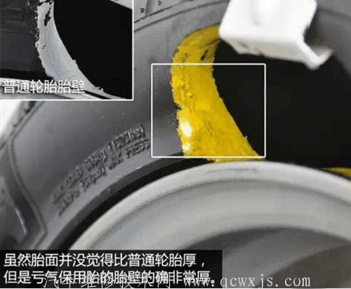 從外觀上看,泄氣保用輪胎與普通輪胎完全是一個模樣,同樣有胎面花紋、尺寸參數(shù)、胎壓標(biāo)準(zhǔn)、檢驗(yàn)標(biāo)簽等輪胎必備元素。