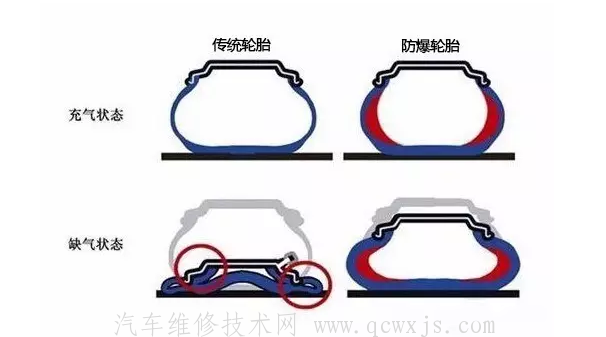 普通輪胎遇上爆胎時,胎體會瞬間塌陷,無法支撐車輛繼續(xù)行駛,在輪轂的切割作用下,甚至?xí)缂埰闼毫眩欢箽獗?#x7528;輪胎由于堅(jiān)挺的胎壁作支撐,即使胎內(nèi)的氣漏光,也可以最大程度地保證胎體的完整性,避免車輛失控,并繼續(xù)支撐車輛行駛一段距離。