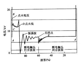 AB段:為觸點(diǎn)斷開、次級電壓上升的階段。A點(diǎn)為觸點(diǎn)斷開的瞬間,AB垂線表示點(diǎn)火線圈所產(chǎn)生的擊穿電壓。