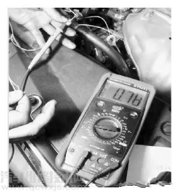 測量電磁閥電阻為10.2Ω,正常。將電流表串聯(lián)在壓縮機(jī)控制電磁閥線路中,打開A/C開關(guān)對(duì)比電流表顯示診斷儀的數(shù)值,基本一致(下圖),說明空調(diào)放大器和線路正常。于是判斷為壓縮機(jī)電磁閥卡死或斜盤角度調(diào)節(jié)機(jī)構(gòu)不能動(dòng)作導(dǎo)致空調(diào)不制冷。