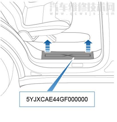 ? 打印在產(chǎn)品銘牌上,位于乘客車門柱上。前排副駕駛側車門打開時可以看到。