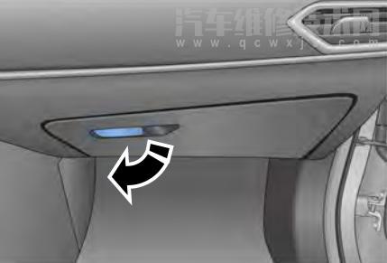 拉動手套箱蓋拉手,打開手套箱;向前推回箱蓋,關閉手套箱。確保車輛在行駛時手套箱完全關閉。