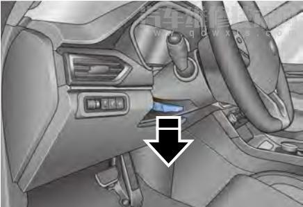 1. 沿箭頭方向向下拉轉向鎖止桿,轉向管柱解鎖。