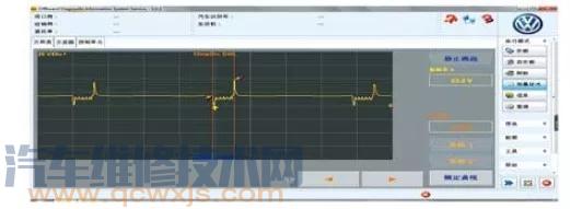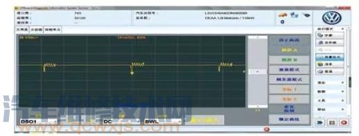 結(jié)合此車的現(xiàn)象進(jìn)行分析,高壓油泵更換過,凸輪軸和液壓挺柱都檢查了沒有問題,無故障碼且明顯油壓不穩(wěn)。于是就先測試一下怠速時(shí)高壓油泵的控制線波形如圖4所示。