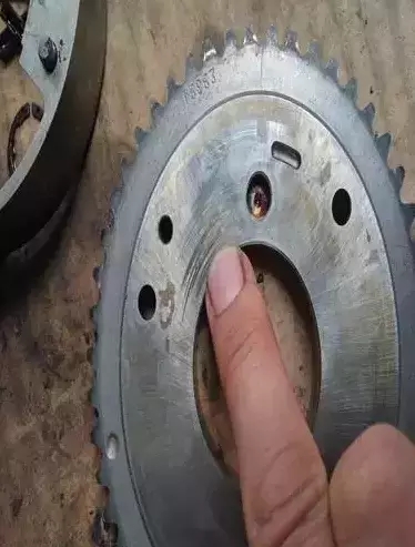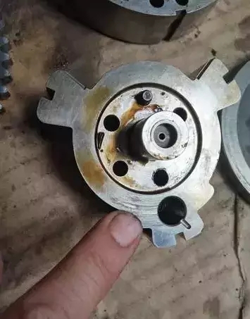 在得到客戶同意后拆解發(fā)動(dòng)機(jī)正時(shí),發(fā)現(xiàn)凸輪軸調(diào)節(jié)執(zhí)行器柱塞卡在里面,造成配氣相位延遲最大狀態(tài)