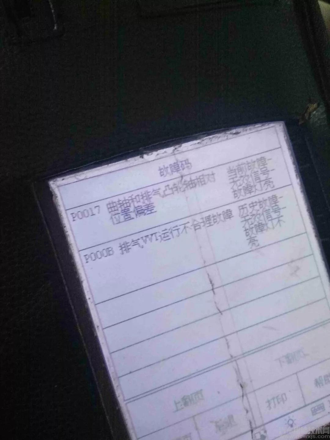 本車的發(fā)動(dòng)機(jī)484Q,采用可變進(jìn)氣控制。在進(jìn)排氣凸輪軸的端部安裝兩個(gè)VVT控制機(jī)械閥。發(fā)動(dòng)機(jī)控制單元根據(jù)采集的各種信號(hào),水溫,負(fù)荷,轉(zhuǎn)速等等,計(jì)算出合理的氣門開啟角度,然后控制VVT控制電磁閥打開的大小,控制流入機(jī)械VVT閥的機(jī)油壓力,使凸輪軸產(chǎn)生相對(duì)的運(yùn)動(dòng),合理開啟氣門。同時(shí),在凸輪軸尾部有兩個(gè)凸輪軸位置傳感器反饋實(shí)際位置。如果實(shí)際位置同目標(biāo)位置偏差過大,系統(tǒng)就報(bào)故障碼。P0017曲軸和排氣凸輪軸相對(duì)位置偏差。P000B排氣VVT運(yùn)行不合理。這兩個(gè)故障碼主要針對(duì)排氣端的。根據(jù)檢查的難易性,先檢查機(jī)油,檢查凸輪位置傳感器,檢查VVT控制電磁閥。特別是檢查電磁閥發(fā)現(xiàn)內(nèi)部有異物。