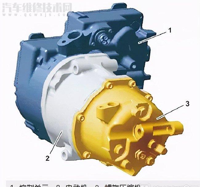 熄火后,在次將高壓空調泵的高壓插頭接上,連接好低壓插頭,在次讀取BMS的絕緣電阻數據流為225kΩ。由此可以判斷高壓空調泵內部的絕緣電阻值過小。如圖8所示,電動制冷壓縮機包含三個主要部件:第一部包括逆變器(調節單元),可將高電壓車載電氣系統的126V直流電壓轉換為交流電壓,并且把其供至三相電動機;第二部包括三相電動機,用于驅動渦旋式壓縮機;第三部包括渦旋式壓縮機,該壓縮機包含兩個嵌套式蝸殼,其中一個是固定的,另外一個可以在前者內部做圓周運動。在此流程中,蝸殼反復地相互接觸,在卷繞中形成數個逐漸變小的腔室。這樣子,制冷劑取得壓縮并進到這些腔室中,直至到了中心處排出。發動機調節單元通過CAN I總線調節電動制冷壓縮機工作。