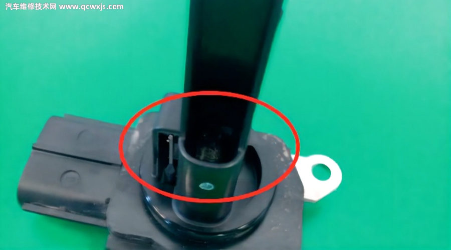 維修人員查看空氣流量計線束,未見線路異常或干擾源,因此懷疑是空氣流量計有問題。拆卸空氣流量計檢查,發現在感知元件的表面附著有棉絮狀異物。再查看進氣管路,其內壁上也貼附有一些相同的絮狀物。
