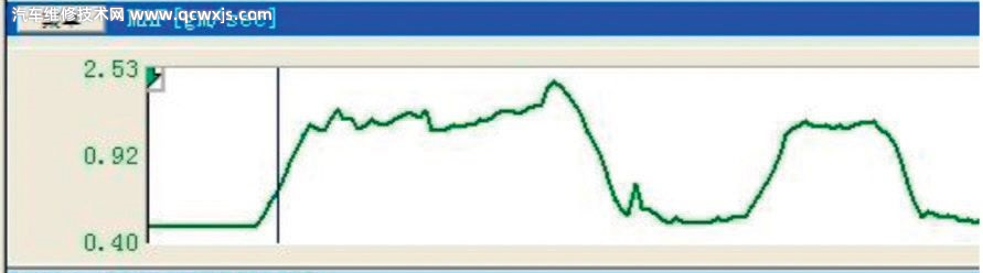從數據流還可以看出,怠速運轉時,進氣流量的數據(MAF)很不穩定,數據最低時接近0,這明顯不正常。