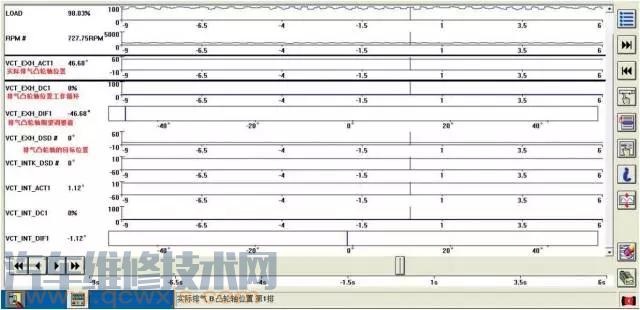 同時,進氣及排氣凸輪軸位置工作循環都為0%,說明此時VCT系統并不參與凸輪軸的位置調整工作。