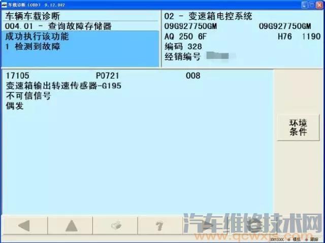 1、電腦檢測(cè)故障碼“17105 變速箱輸出轉(zhuǎn)速傳感器—G195不可信信號(hào)偶發(fā)”