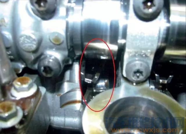 既然點火和噴油都沒有問題,接下來決定測量缸壓。測量發現1缸的缸壓可以達到10MPa,與其他缸一致。拆卸氣門室蓋檢查,發現1缸的一個進氣門推桿傾斜(圖)。