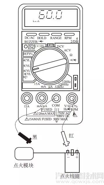 按下圖所示的方法接好萬用表,紅表筆接傳感器信號(hào)輸入端,黑表筆搭鐵。