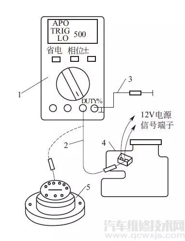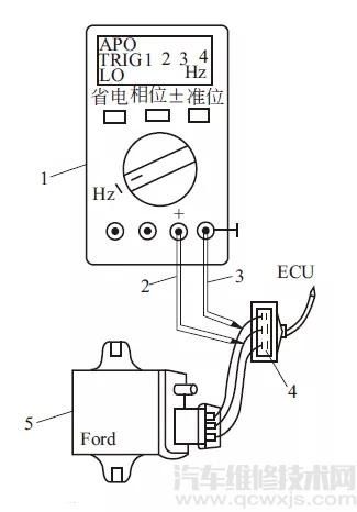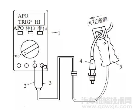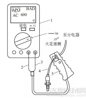 1—萬用表;2—紅線(+);3—黑線(-);4—火花塞;5—感應(yīng)鉗
