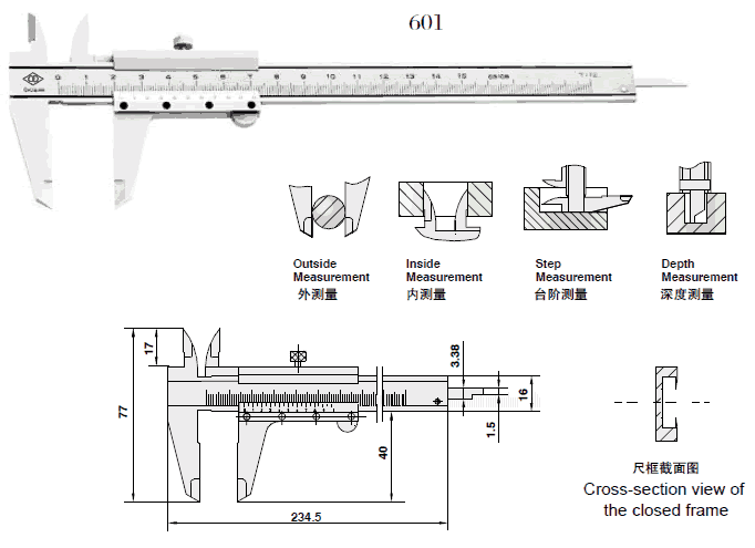 ⑤用深度游標卡尺測量工件深度時,將固定量爪與工件被測表面平整接觸,然后緩慢地移動游標,使量爪與工件接觸。移動力不宜過大,以免硬壓游標而影響精度和讀數的準確性⑥用畢,將游標卡尺擦拭干凈,并涂一薄層工業凡士林,放入盒內存放,切忌拆卸、重壓