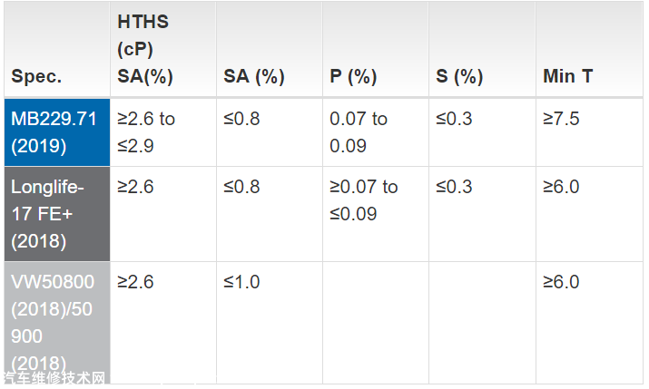 此外,各歐系汽車(chē)廠家的原廠認(rèn)證標(biāo)準(zhǔn)對(duì)于帶有顆粒捕集器的國(guó)六發(fā)動(dòng)機(jī)應(yīng)該使用的機(jī)油灰分(SA)也有具體要求,參見(jiàn)下圖。