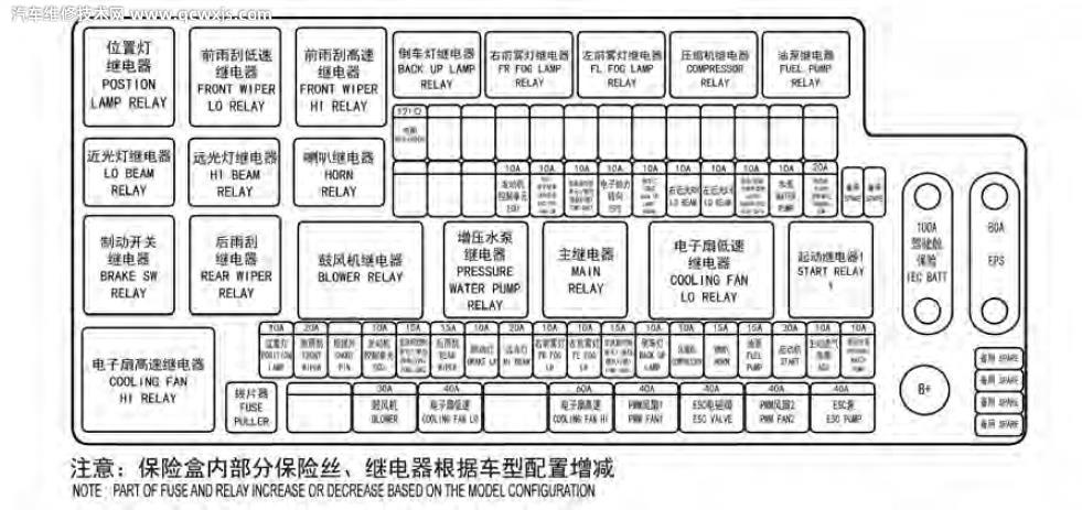 車輛型號或配置不同,保險絲盒內部元件的布置可能不同,請以實車為準。