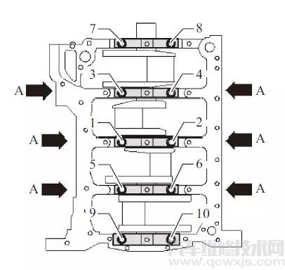 更換所有的曲軸螺栓并按照下列1~10的順序擰緊。