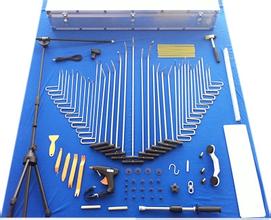 各種鈑金錘和墊鐵,鋼尺,手提磨砂機,填料,固化劑,調料板,抹布,吹塵槍,