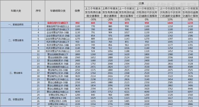 需要交多少錢是有前提條件的,一是車子的用途和車座的數(shù)量,第二個(gè)就是根據(jù)當(dāng)?shù)氐貐^(qū)的事故率來(lái)計(jì)算的。具體交多少可以參考下圖: