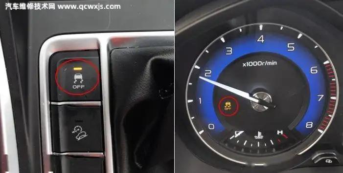 按下ESC OFF開關,組合儀表上的ESC OFF燈點亮,ESC的部分功能關閉。再次按下ESC開關,ESC功能恢復,組合儀表上的ESC