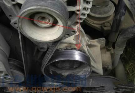 檢查皮帶張力:發(fā)動(dòng)機(jī)停機(jī)狀態(tài)下,用拇指強(qiáng)力地按壓2個(gè)皮帶輪中間的皮帶,按壓力約為10kg左右,如果皮帶的下壓量在10mm左右,則認(rèn)為皮帶張力合適。如果壓下量過大,則認(rèn)為皮帶的張力不足。張力不足時(shí),皮帶很容易出現(xiàn)打滑。現(xiàn)在的皮帶都是自動(dòng)漲緊的,就是這個(gè)有一個(gè)大彈簧,一直壓緊皮帶,不過日本車有很多依然是手動(dòng)漲緊的,皮帶過松也會(huì)產(chǎn)生異響。皮帶異響很好判斷,就是下次冷啟動(dòng)的時(shí)候往皮帶上灑點(diǎn)水,如果啟動(dòng)的時(shí)候不響了就是皮帶響,水可以潤(rùn)滑,打滑依然存在不過不會(huì)產(chǎn)生噪音而已。