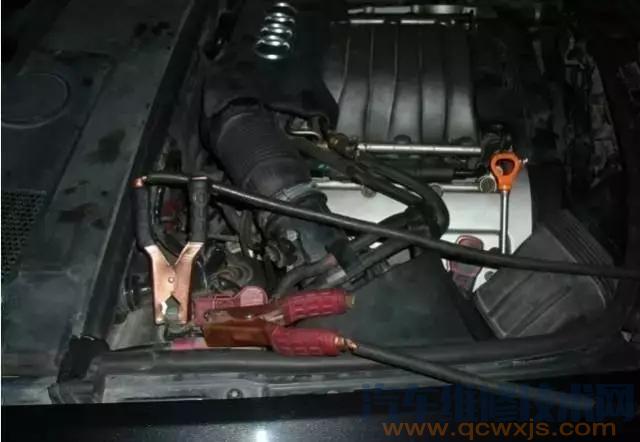 發(fā)動(dòng)機(jī)機(jī)艙內(nèi)的專用連接點(diǎn)(見圖)。后備箱幫車點(diǎn)的連接方法