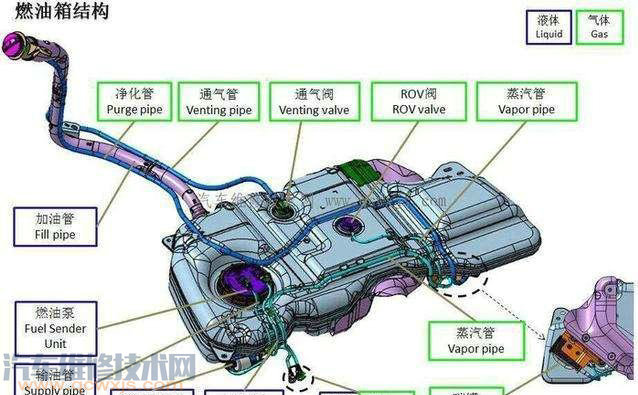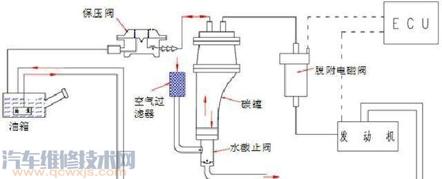 油箱是一個(gè)相對(duì)密封的環(huán)境,加油時(shí),隨著汽油的不斷增加,油箱內(nèi)的空余容積不斷減小,必然會(huì)導(dǎo)致相應(yīng)體積的油氣被擠壓出來(lái),這種情況會(huì)造成油箱內(nèi)氣體壓強(qiáng)增加,但是在油箱頂部有個(gè)通氣管,通氣孔直接與油箱蓋相連,當(dāng)油箱內(nèi)的壓強(qiáng)升高后,到達(dá)120kpa以上,油箱蒸汽閥門便會(huì)打開(kāi),排出汽油蒸汽,不是直接排放到大氣中,而是經(jīng)過(guò)活性炭罐到達(dá)進(jìn)氣歧道,最后經(jīng)過(guò)排氣管排出。