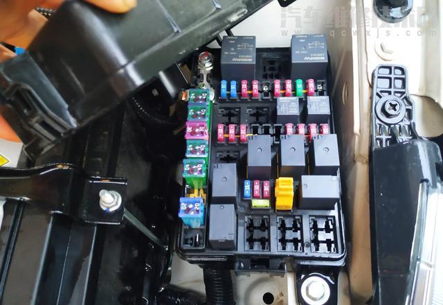 3、由于開啟擋風玻璃清洗功能時雨刷也會同時工作,如果你不想讓雨刷工作只想噴玻璃水的話也可以從保險盒里找到玻璃水噴水電機的繼電器,然后用粗導線把繼電器的供電針腳短接,這樣噴水電機就會連續工作。